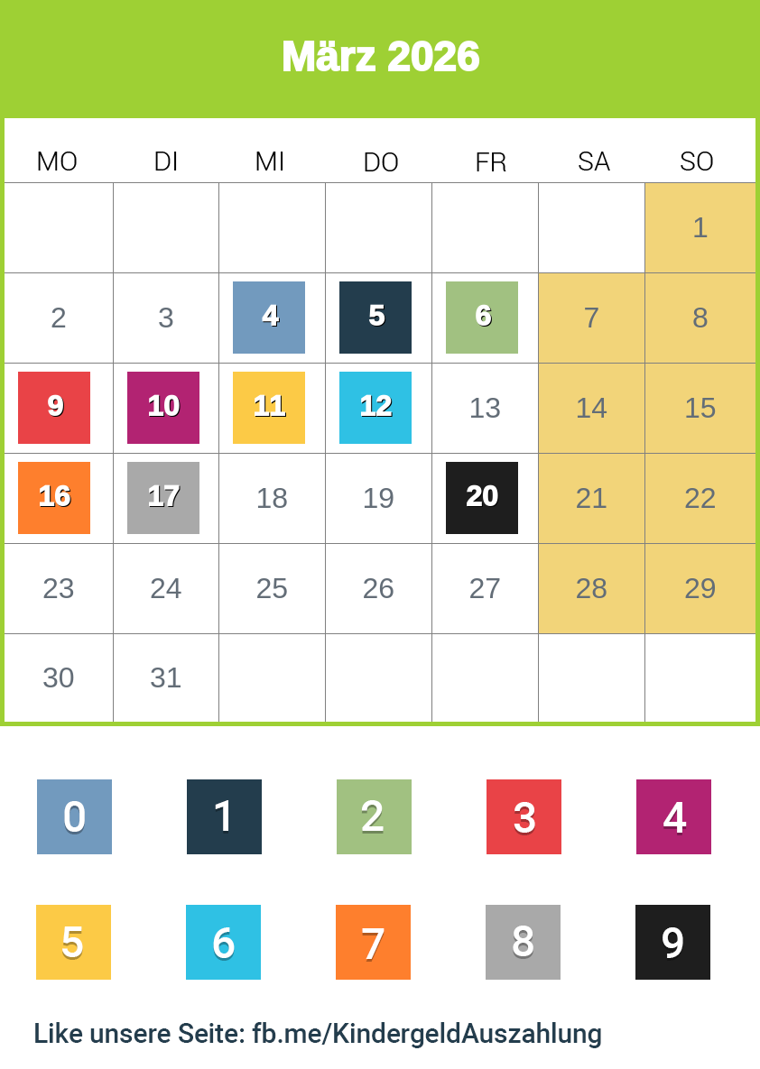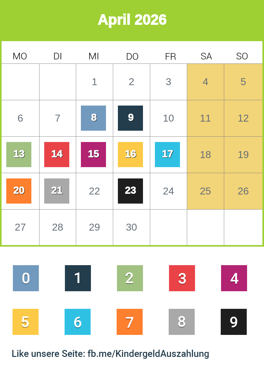 Im Kalender finden Sie alle Endziffern, Überweisungstermine und Zahlungseingänge.
